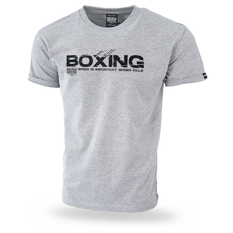 Muška majica kratkih rukava i klasičnog kroja. Na lijevom rukavu mala je aplikacija logotipa Doberman’s Aggressive. Na prednjoj i stražnjoj strani nalazi se otisak Boxing.