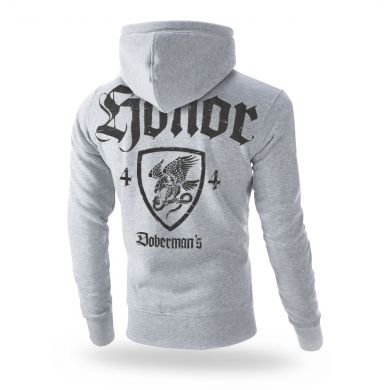 Dukserica s kapuljačom, na kopčanje patentnim zatvaračem od kvalitetnog pamuka, s rubovima koji su završeni elastičnom trakom i dva džepa na prednjoj strani. Izrađena od kvalitetnog pamuka. Na poleđini se nalazi 3D otisak grba HONOR Doberman's koji prikazuje orla kako hvata zmiju u kandžama. Na prednjoj lijevoj strani prsnog koša je izvezena minijatura ovog grba.