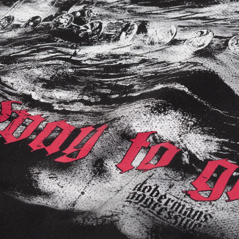 Muška polo majica kratkih rukava. Na prednjoj lijevoj strani prsnog koša je mali natpis Viking Comp nadopunjen je simbolom runa. Na poleđini otiska prikazani su vikinški brodovi na uzburkanom moru s natpisom Viking Comp - Ony my Way to Glory.