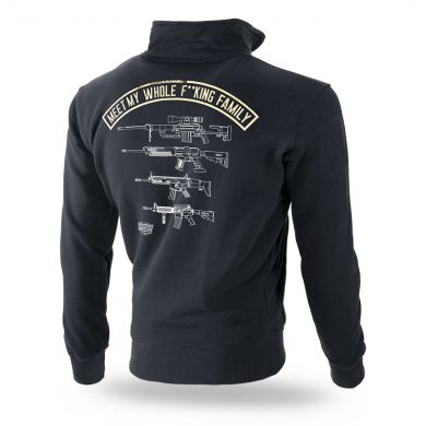 Dukserica elastičnim manžetama i dva prednja džepa. Izrađena od kvalitetnog pamuka. Na prednjoj i stražnjoj strani tisk "Meet my whole f**cking family".
