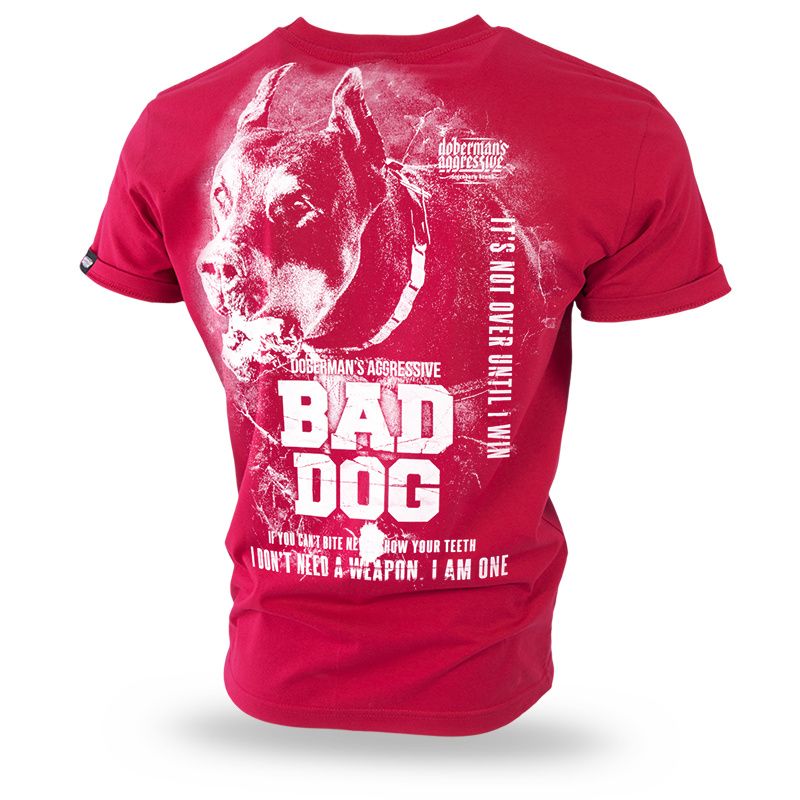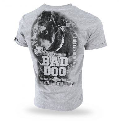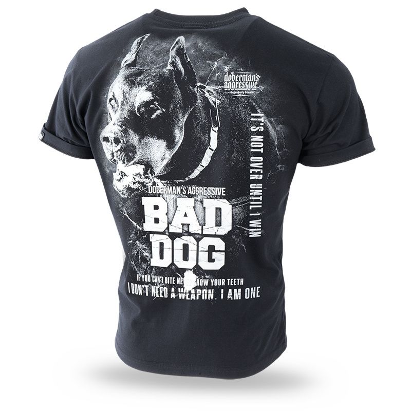 Muška majica kratkih rukava i klasičnog kroja. Na lijevom rukavu mala je aplikacija logotipa Doberman’s Aggressive. Kao što je tipično za Doberman's Aggressive brend pozadi je veliki tisk "Mad Dog".