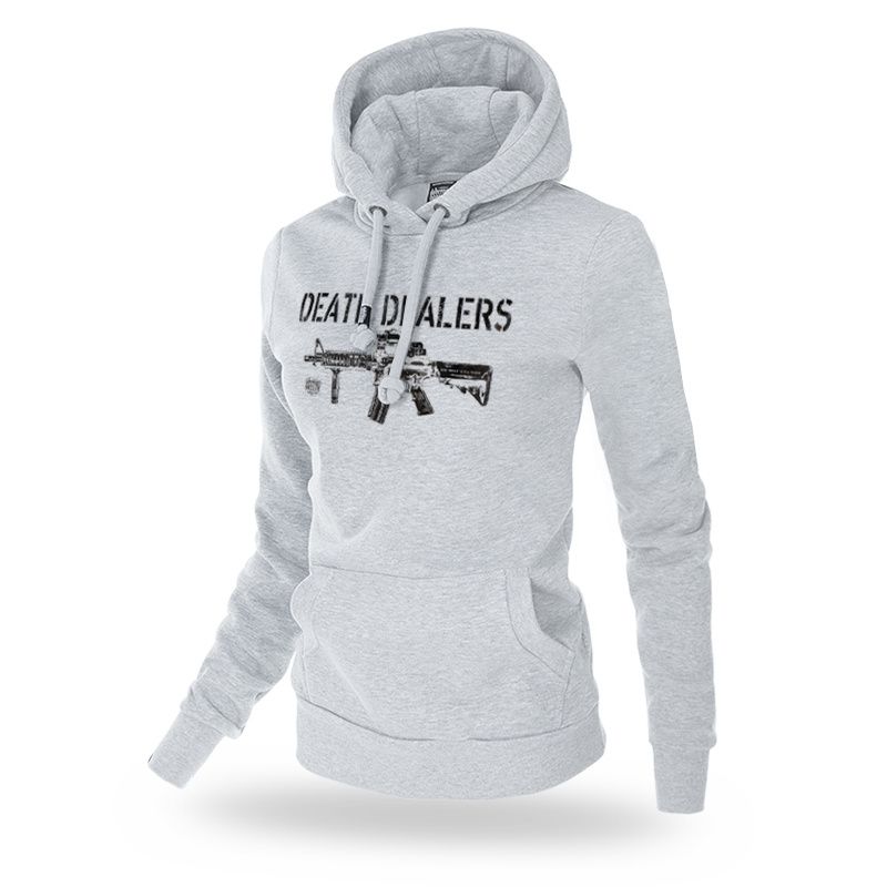 Ženska dukserica s dva prednja džepa od udobnog pamuka, malo dužeg kroja za veću udobnost nošenja. Na stražnjoj strani tisk „Death Dealers“.