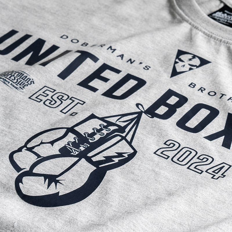 Muška majica kratkih rukava i klasičnog kroja. Na lijevom rukavu mala je aplikacija logotipa Doberman’s Aggressive. Na prednjoj strani nalazi se nadpis United Boxing.