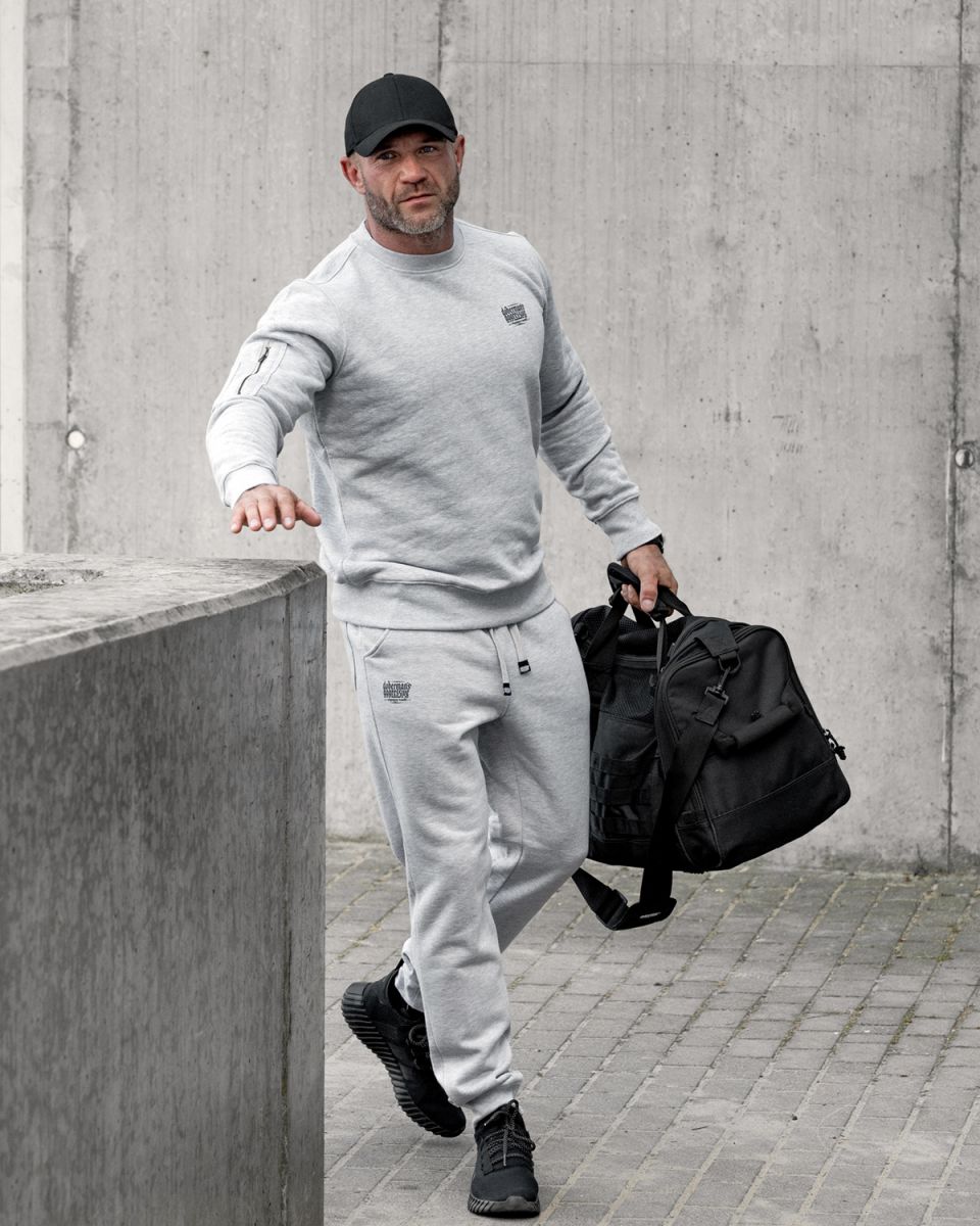 Komplet sportske trenirke izrađene od ugodnog kvalitetnog pamuka. Džep na rukavu i bedru se zatvara na zip. Na prsima s lijeve strane nalazi se mali logo marke DA. Isti logo marke nalazi se na desnoj nogavici trenirke.