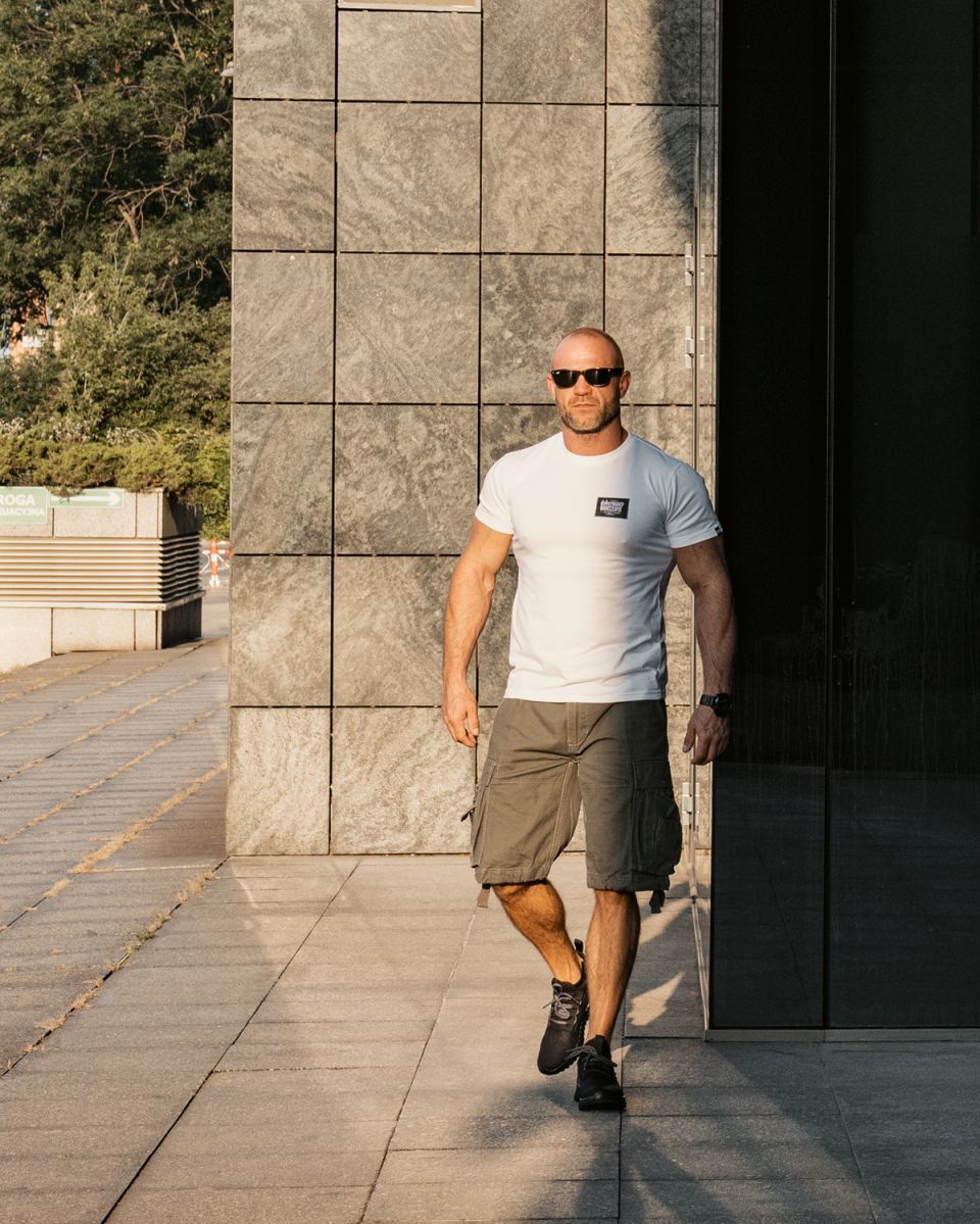 Muška majica kratkih rukava i klasičnog kroja. Na lijevom rukavu mala je aplikacija logotipa Doberman’s Aggressive.