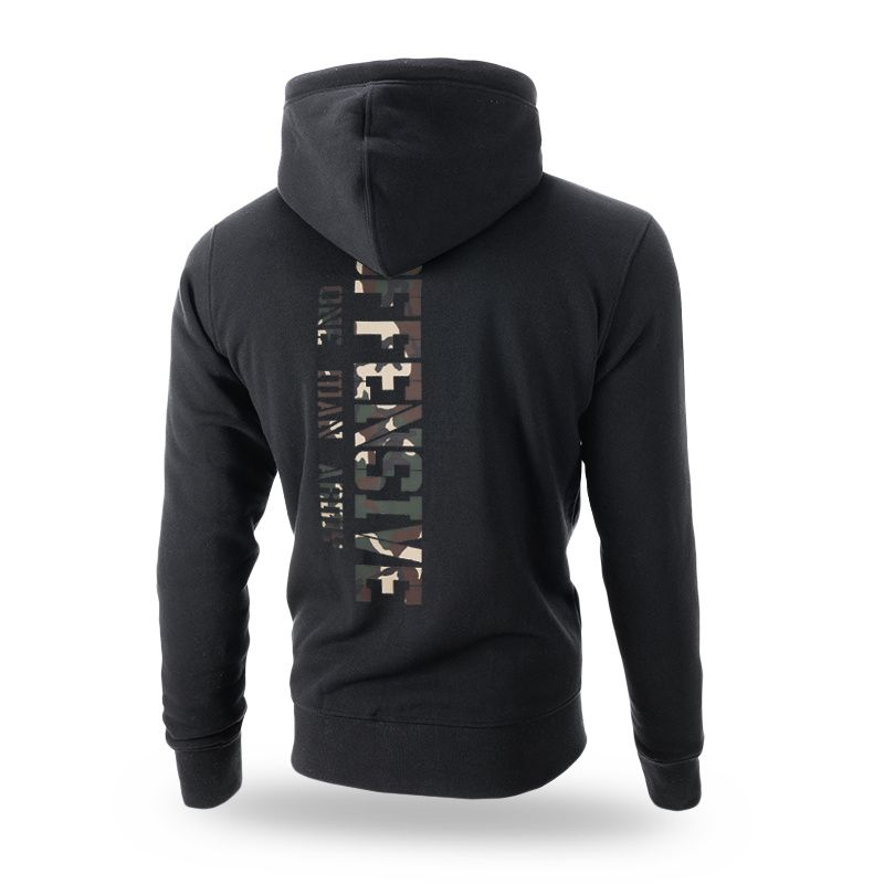 Dukserica s kapuljačom, na kopčanje patentnim zatvaračem od kvalitetnog pamuka, s rubovima koji su završeni elastičnom trakom i dva džepa na prednjoj strani. Po cijeloj površini na leđima nalazi se veliki potisak "Offensive One Man Army".