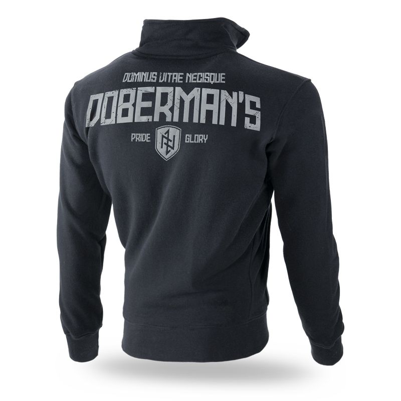 Dukserica elastičnim manžetama i dva prednja džepa. Izrađena od kvalitetnog pamuka. Dok naprijed ima mali otisak na prsima, na leđima ima veliki otisak Dominus Vitae Necisque DOBERMAN’S zajedno sa štitom s runama i natpisom Pride – Glory.