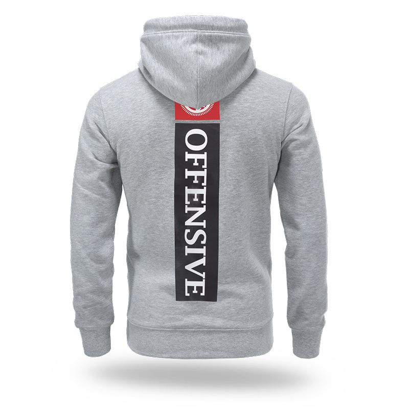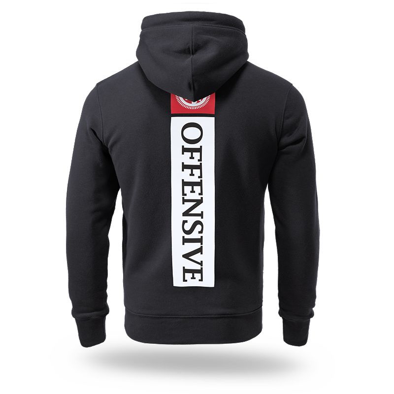 Dukserica s kapuljačom Dobermans Aggressive izrađena je od ugodnog pamuka, završena širokim, elastičnim rubom na rukavima i struku. Na leđima se nalazi veliki natpis "OFFENSIVE" iznad kojeg je mali logo marke. Na prednjoj strani je minimalistički detalj u obliku malog loga na prsima.