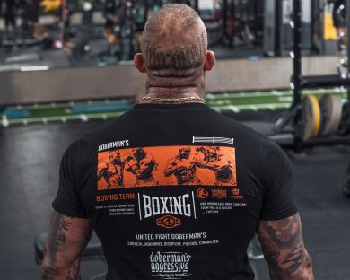 Muška majica kratkih rukava i klasičnog kroja. Na lijevom rukavu mala je aplikacija logotipa Doberman’s Aggressive.