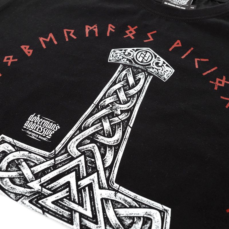 Muška majica kratkih rukava i klasičnog kroja. Na lijevom rukavu mala je aplikacija logotipa Doberman’s Aggressive. Thorov čekić je na prednjoj i stražnjoj strani nadopunjen runskim simbolima.