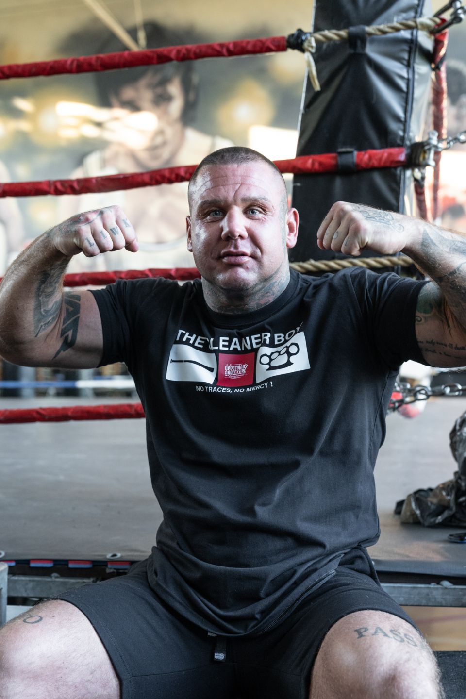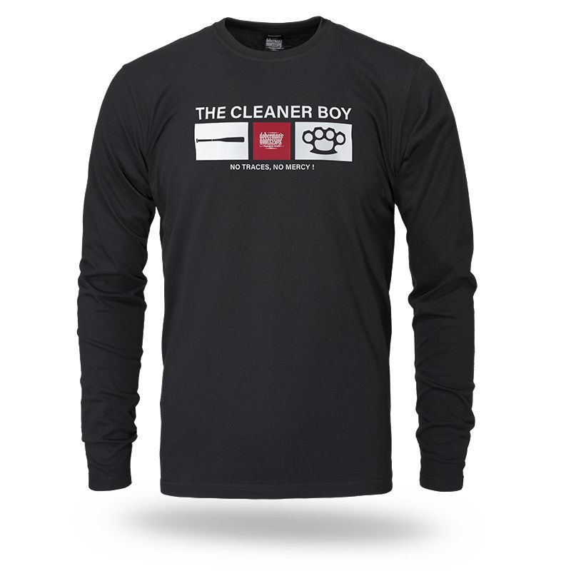 Muška majica dugih rukava i klasičnog kroja. Na prsima je veliki otisak Cleaner boy – No traces,no mercy!