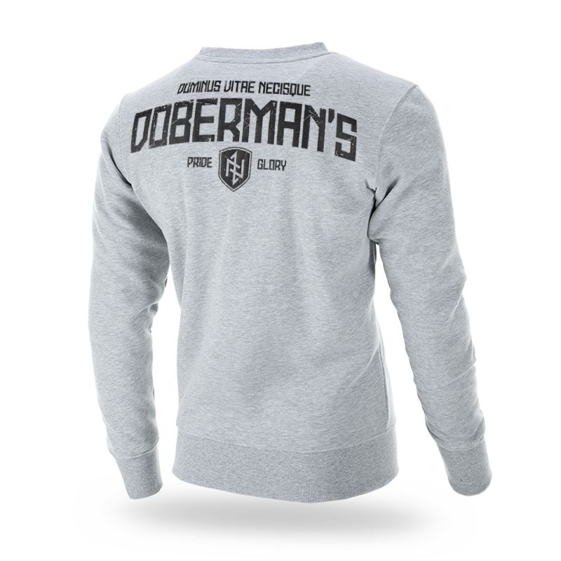 Klasična muška dukserica preko glave. Dok naprijed ima mali otisak na prsima, na leđima ima veliki otisak Dominus Vitae Necisque DOBERMAN’S zajedno sa štitom s runama i natpisom Pride - Glory.