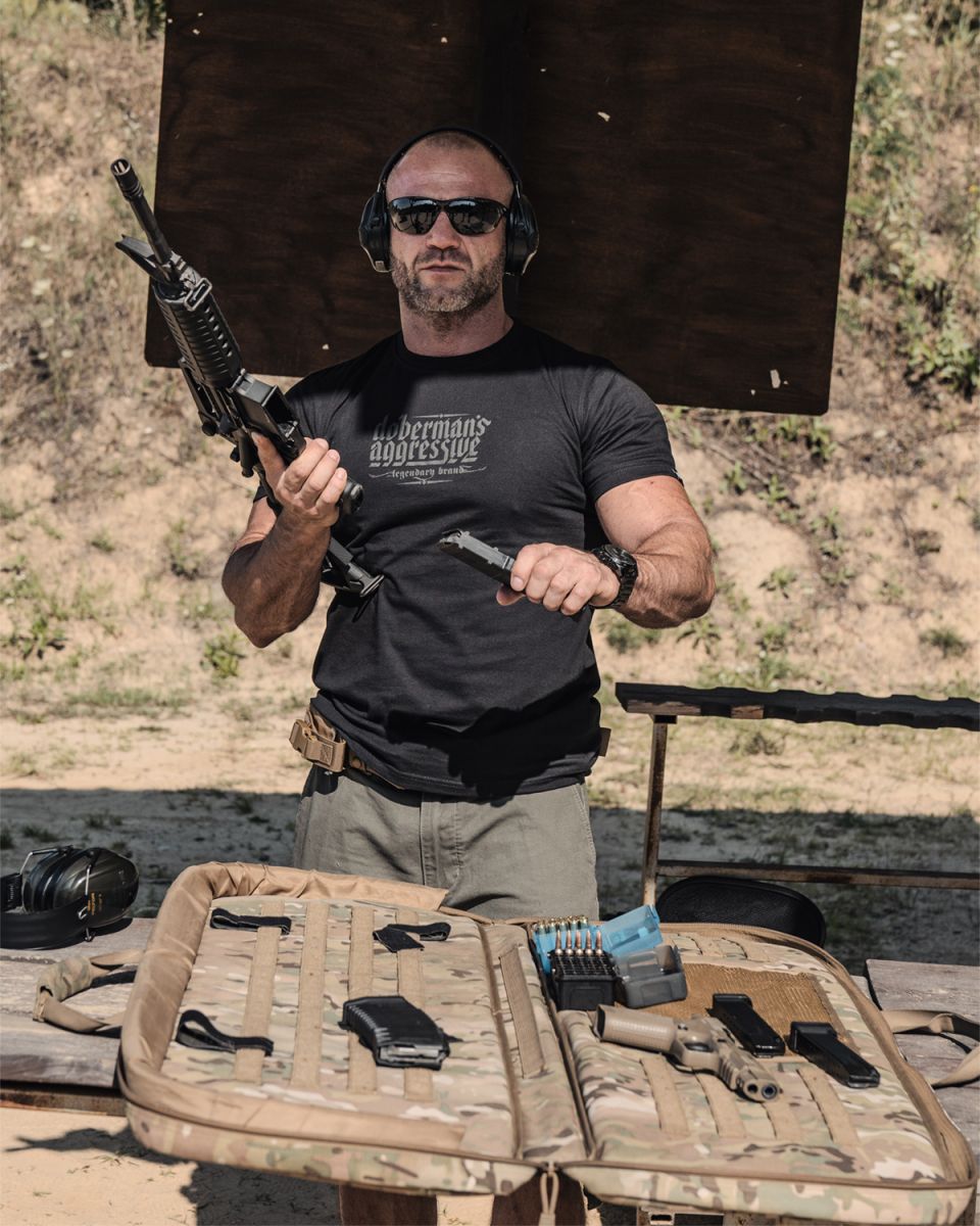 Klasična muška dukserica preko glave. Na lijevom rukavu mala je aplikacija logotipa Doberman’s Aggressive.