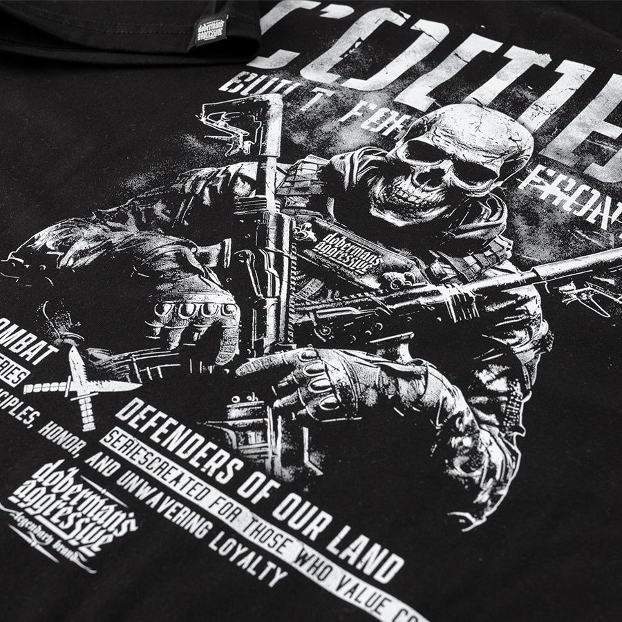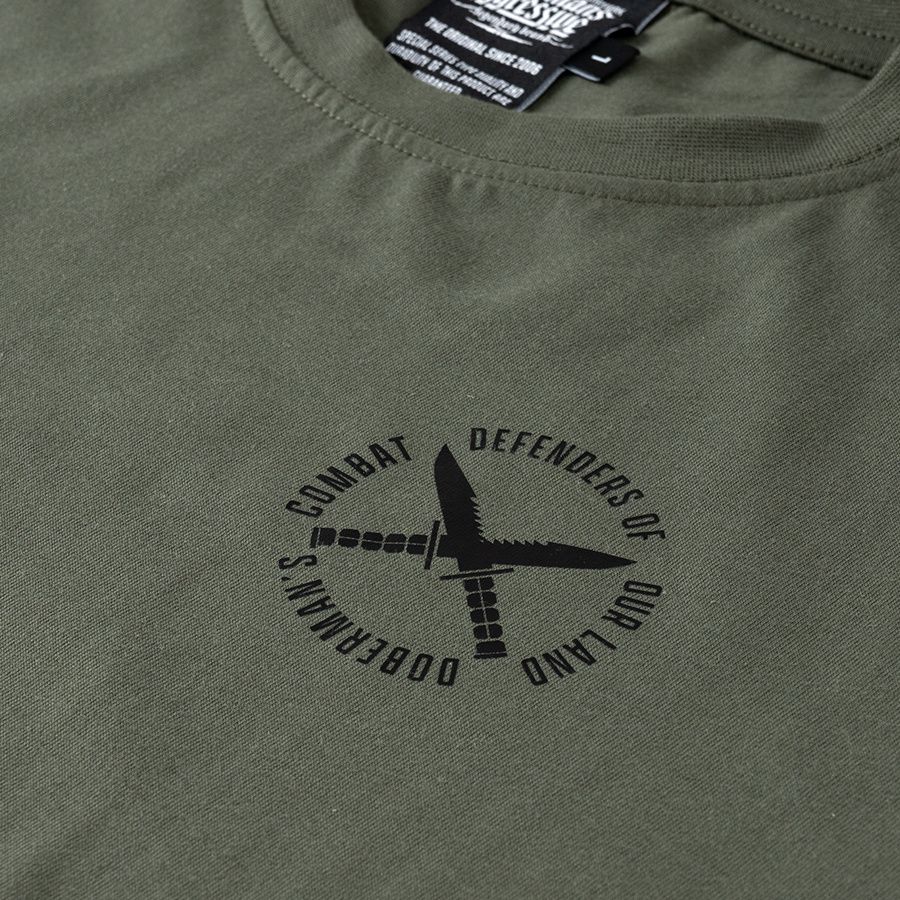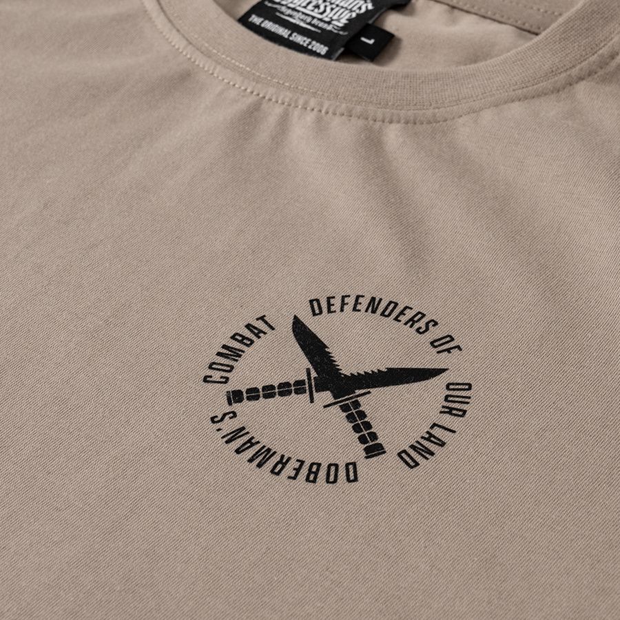 Muška majica kratkih rukava i klasičnog kroja. Na lijevom rukavu mala je aplikacija logotipa Doberman’s Aggressive.
