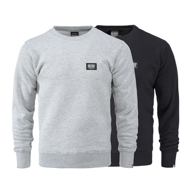 Klasična muška dukserica preko glave. Na lijevom rukavu mala je aplikacija logotipa Doberman’s Aggressive. Na prsima se nalazi mala, decentna zakrpa s logotipom.