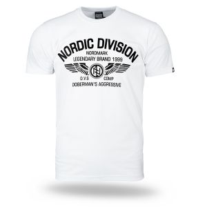 Muška majica kratkih rukava i klasičnog kroja. Na lijevom rukavu mala je aplikacija logotipa Doberman’s Aggressive. Na prsima je veliki otisak Nordic Division.