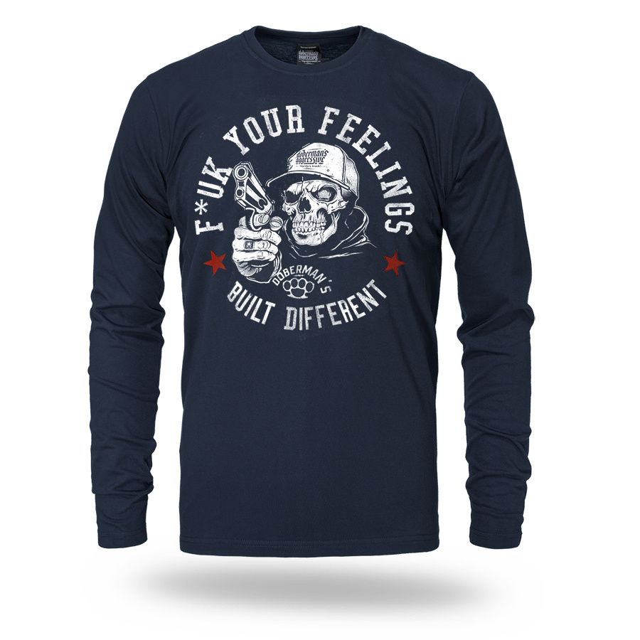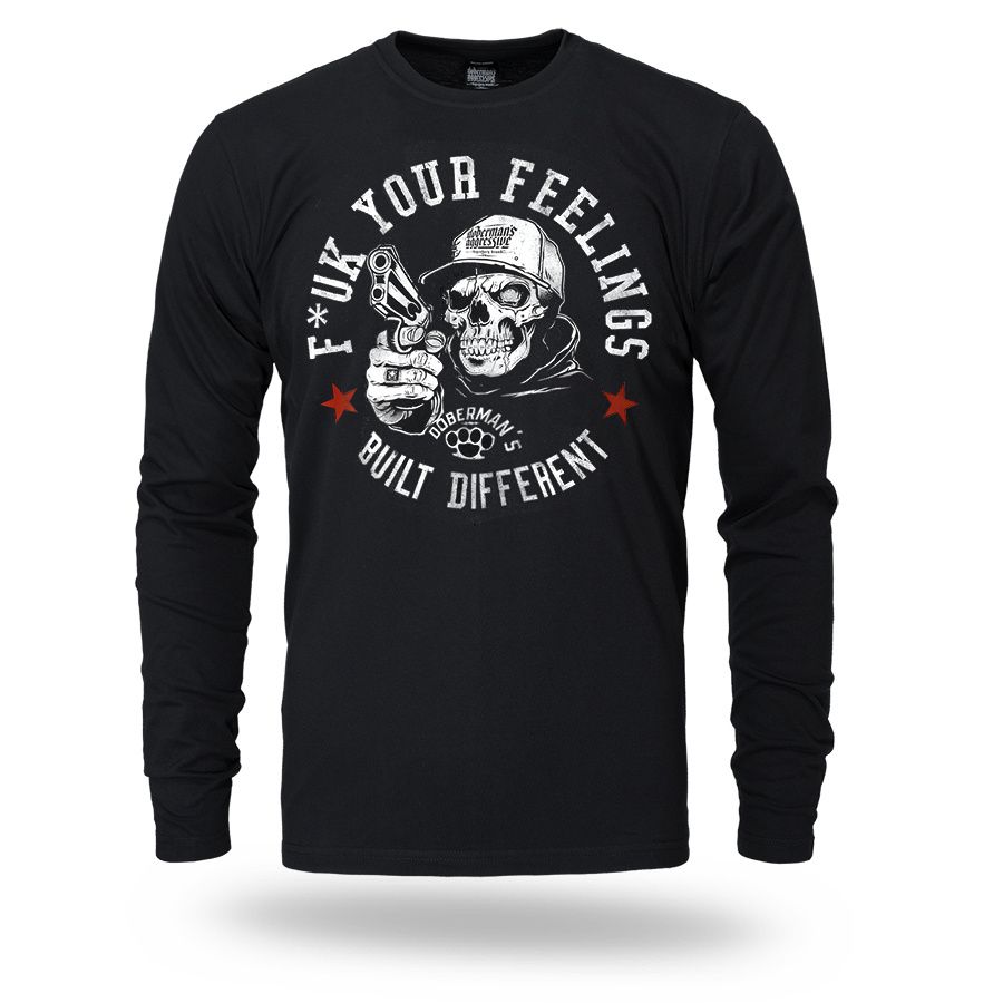 Muška majica dugih rukava i klasičnog kroja. Na prsima je veliki otisak F*ck Your Feelings – Built Different.