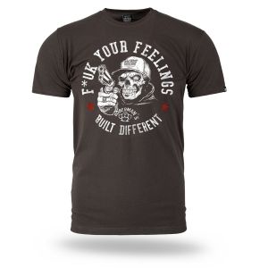 Muška majica kratkih rukava i klasičnog kroja. Na lijevom rukavu mala je aplikacija logotipa Doberman’s Aggressive. Na prsima je veliki otisak F*ck Your Feelings – Built Different.