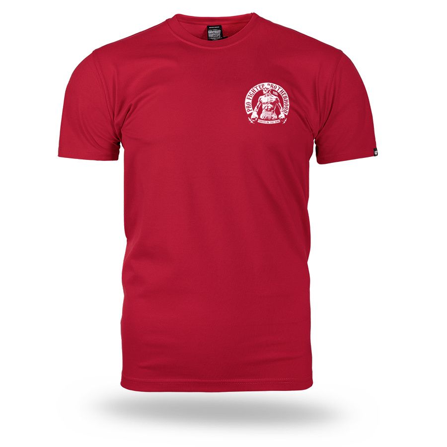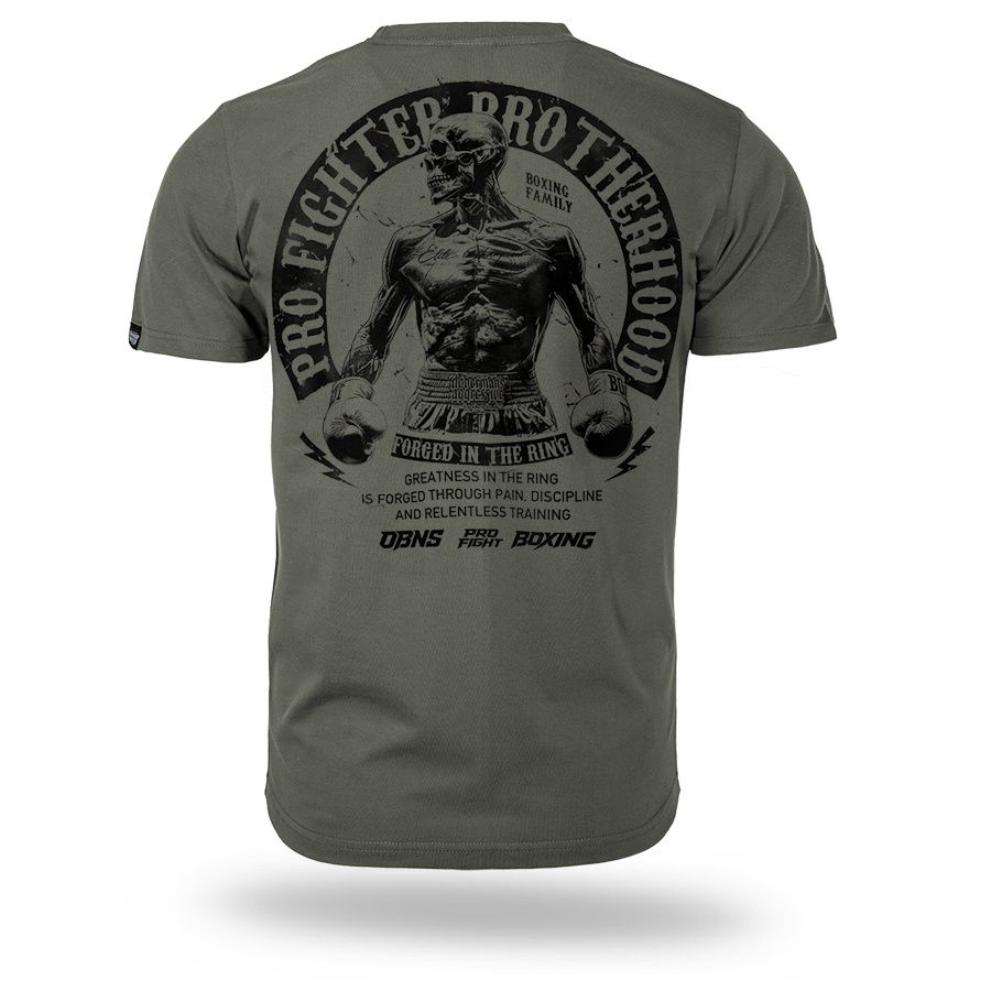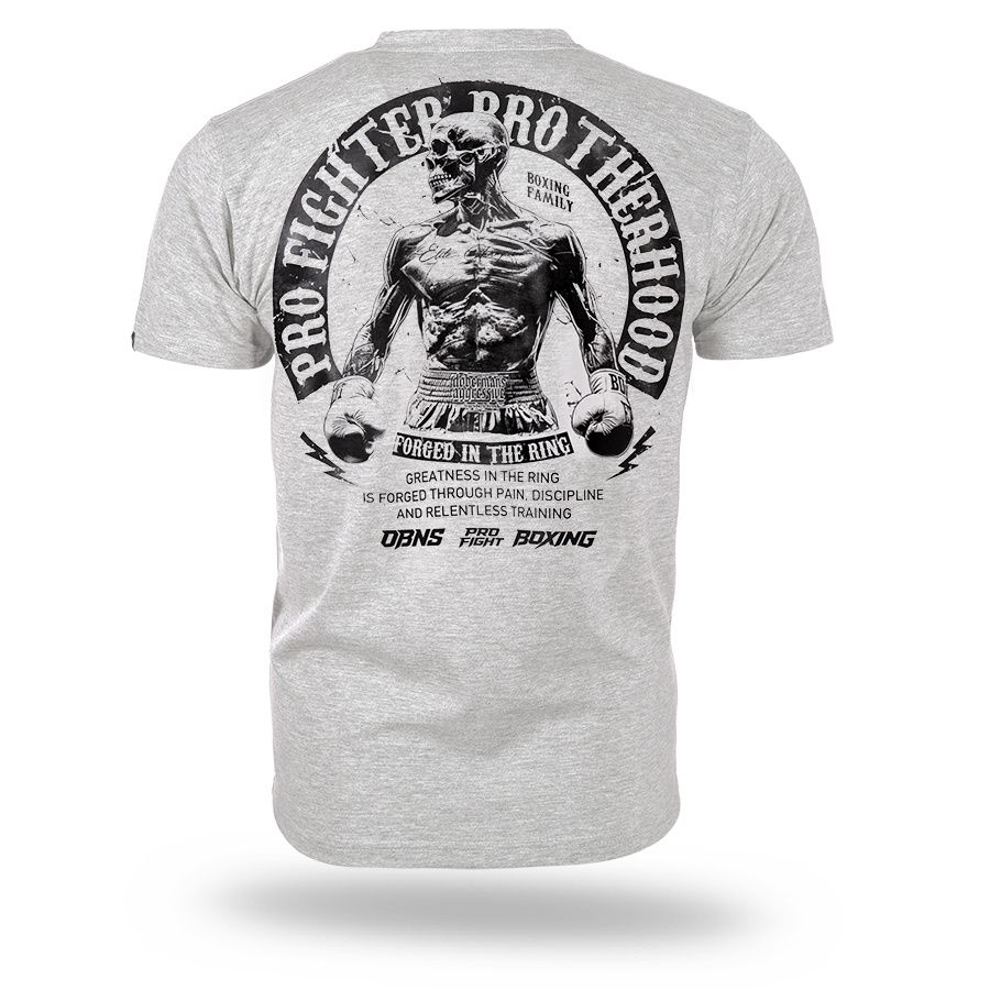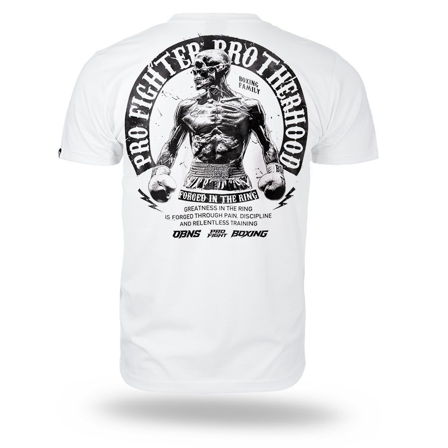 Muška majica kratkih rukava i klasičnog kroja. Na lijevom rukavu mala je aplikacija logotipa Doberman’s Aggressive. Na prednjoj i stražnjoj strani nalazi se otisak Pro Fighter Brotherhood – Forged in the Ring.