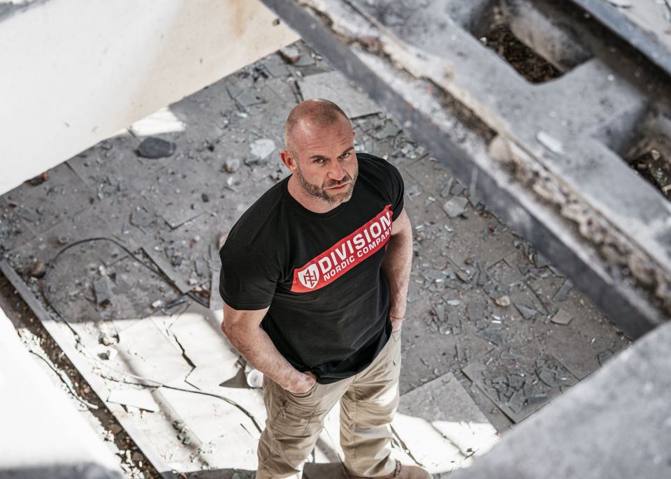Muška majica kratkih rukava i klasičnog kroja. Na lijevom rukavu mala je aplikacija logotipa Doberman’s Aggressive. Na prednjoj strani tisk Division Nordic Company.