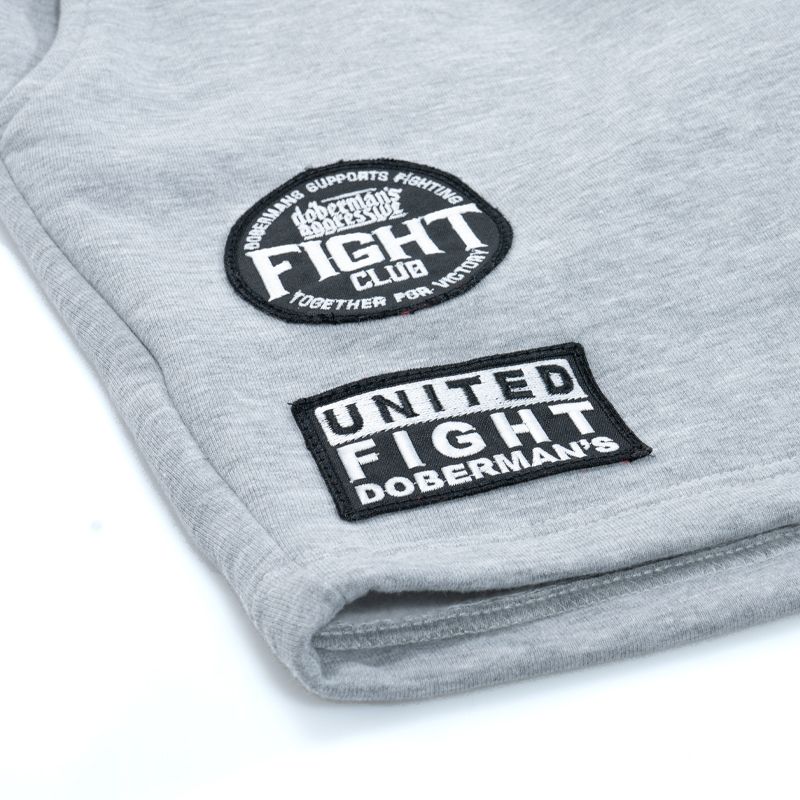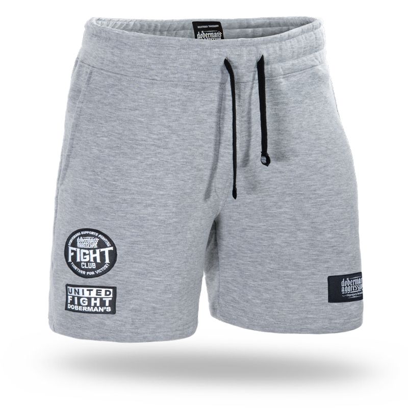 Pamučne kratke trenirka hlače. Gornji dio kratkih hlača završen je podesivim pojasom s vezicom za pritezanje oko struka. Na kraju se nalazi tkana aplikacija s logotipom tvrtke. Na lijevoj nogavici nalazi se tkana etiketa s logotipom Doberman's Aggressive, na desnoj nogavici su 2 izvezena logotipa: Doberman's Fight Club i United Fight Doberman's. Kratke hlače imaju dva džepa sa strane i jedan ušiven straga.
